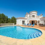 Villa en Calpe de estilo mediterráneo, se encuentra en una magnifica urbanización muy cerca de todos los servicios y playa. El Chalet está dividido en dos viviendas independientes, la parte baja se encuentra el apartamento de 2 dormitorios y 2 baños, cocina independiente, salón comedor con acceso a la naya donde se puede jugar al billar o hacer un poco de gimnasia. En la vivienda superior ofrece 3 dormitorios dobles, 2 baños, cocina totalmente reformada, amplio y luminoso salón comedor con chimenea, se disfruta también de una gran terraza acristalada y abierta. Se beneficia de sauna, zona de Bbq, un gran jardín con árboles frutales, amplio espacio en la zona de la piscina, parking etc.